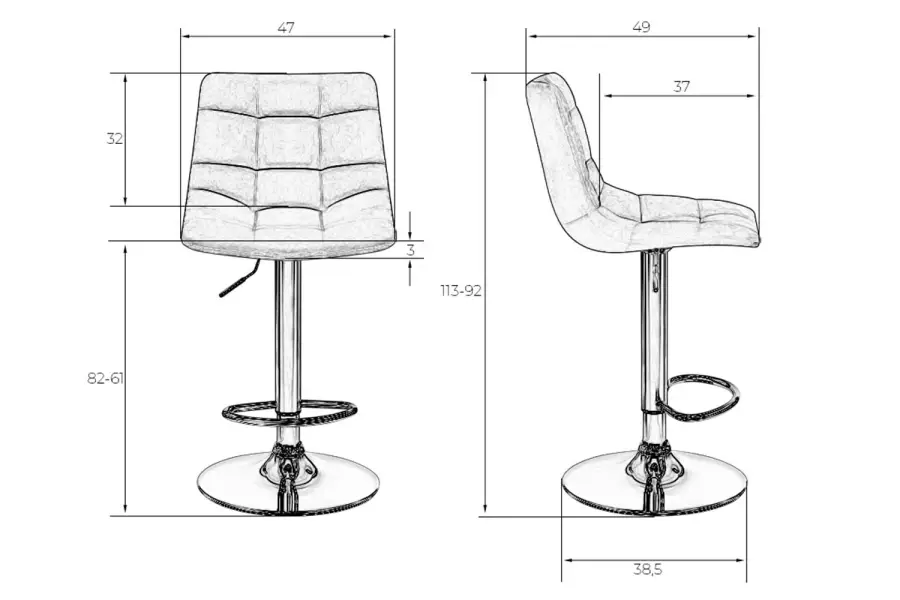 Барный стул DOBRIN Tailor — стильная и очень удобная модель для любого современного и классического интерьера. Надежная металлическая опора с широким основанием и подставкой для ног позволит устроиться за стойкой или у кухонного острова, не опасаясь опрокидывания. Высота сиденья регулируется, поэтому комфортно будет человеку любого роста.