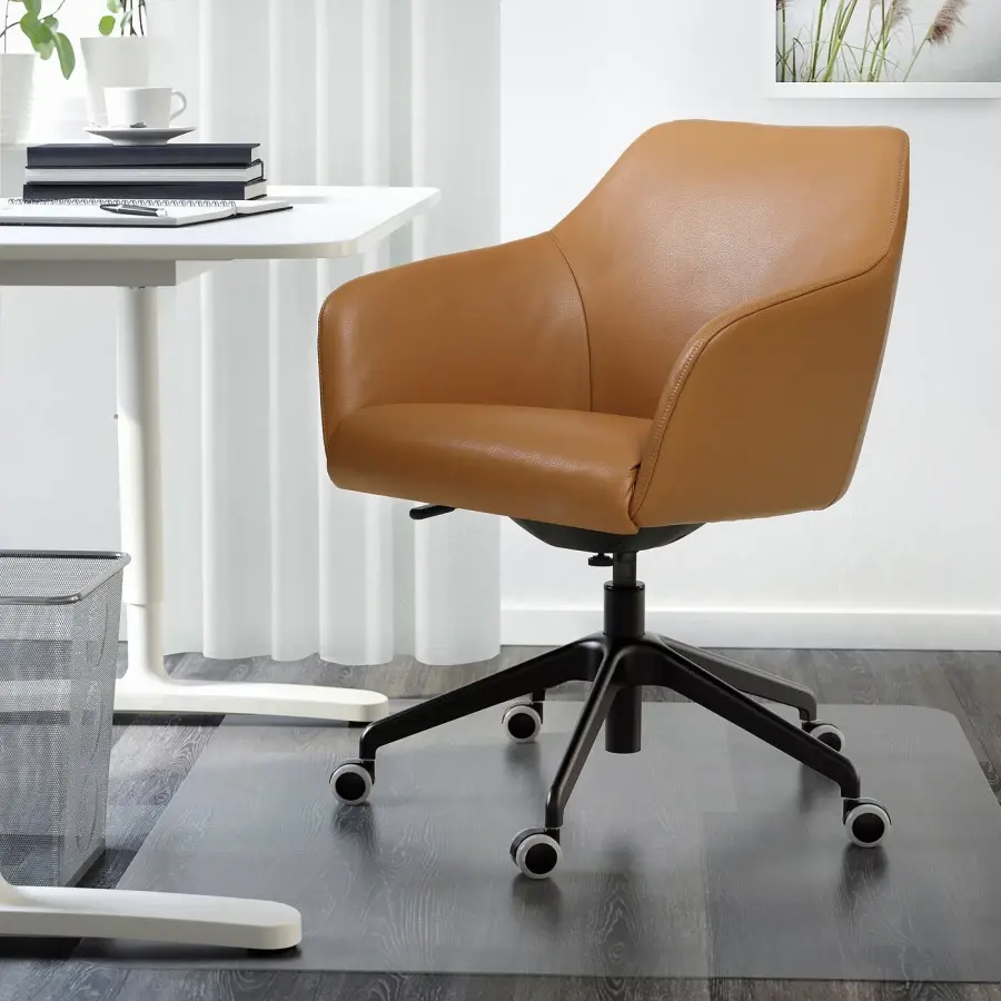 ИКЕА IKEA Вращающийся стул округлых форм с мягкой обивкой. Отделан прочной кожаной обивкой, которая хорошо впишется в любой интерьер. Колеса позволяют легко перемещать кресло из одного места в другое. Оригинальная икея/ikea