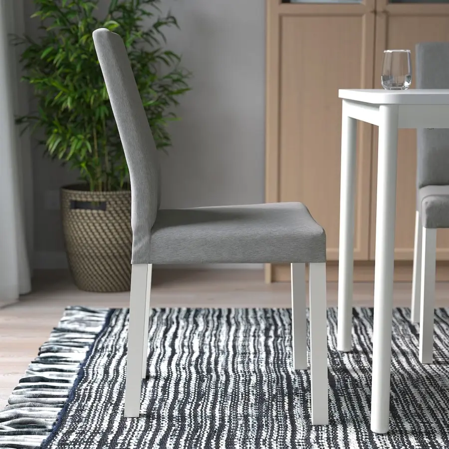 ИКЕА IKEA Сиденье и высокая спинка набиты пеной и обтянуты прочным, но мягким и гладким тканевым чехлом, чтобы сделать времяпрепровождение за столом комфортным и приятным, чтобы вы могли оставаться подольше. После сытной трапезы приятно осознавать, что вы можете легко снять чехол со стула и постирать его в машине. а также уменьшить количество пыли и грязи в вашем жилом пространстве. Прочный и прочный каркас стула из цельного дерева. Силуэт без подлокотников позволяет вам подтолкнуть эти стулья прямо к столу и сэкономить место на полу. Оригинальная икея/ikea