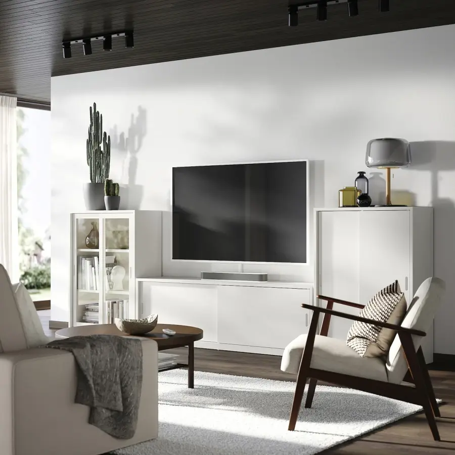 ИКЕА IKEA В серии ТОНСТАД классический дизайн сочетается с восхитительной отделкой кремового цвета, придающей мебели благородный вид. Комбинация с подставкой для телевизора сохраняет кабели в порядке, а шкафы позволяют спрятать одни предметы и выставить напоказ другие. Оригинальная икея/ikea