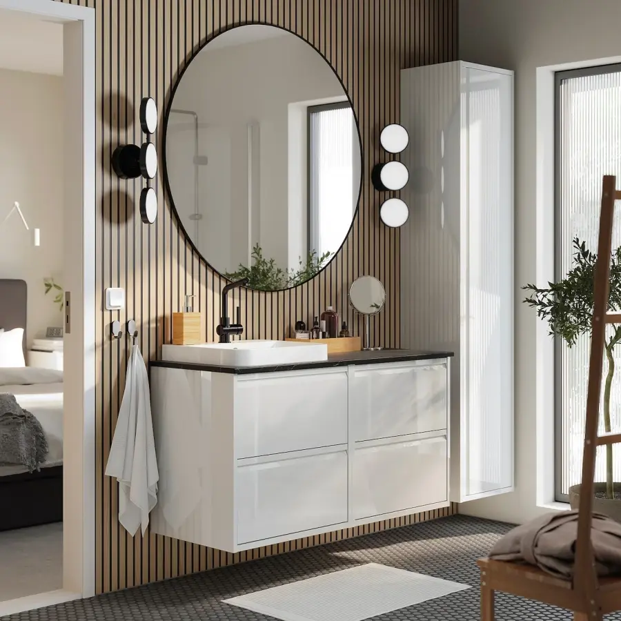 ИКЕА IKEA Если вы делите ванную комнату с другими людьми, это решение даст вам собственный ящик, а может быть, даже два. Шкаф под умывальник совмещен с большой столешницей, на которой поместятся все вещи, которые вам хотелось бы иметь под рукой, собираясь утром. Оригинальная икея/ikea