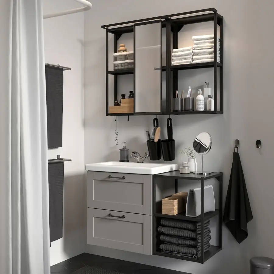 ИКЕА IKEA Каркас навесного шкафа оснащен раздвижным зеркалом, поэтому вы можете подойти очень близко. В шкафу внизу достаточно места для хранения вещей, а контейнер без сверления и крючки поддерживают чистоту вокруг раковины. Оригинальная икея/ikea