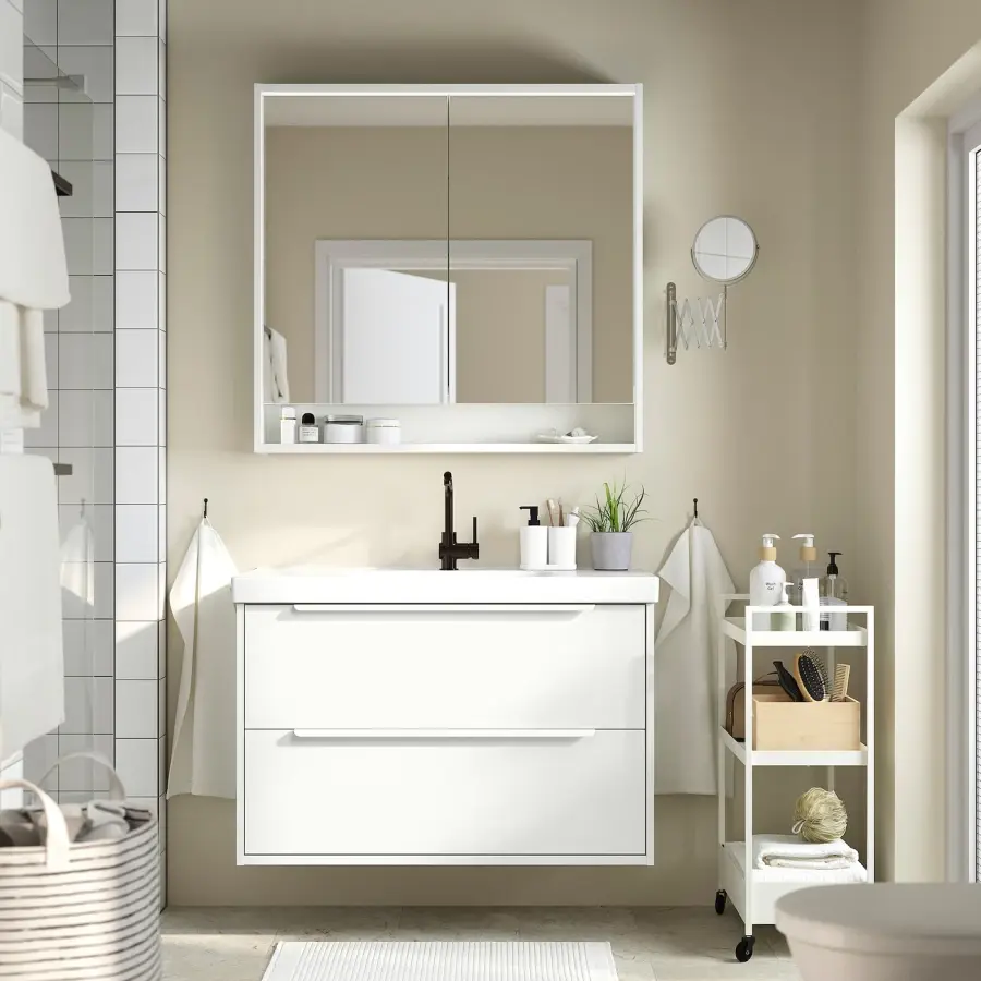 ИКЕА IKEA Мебель для ванной комнаты HAVBÄCK отличается простым дизайном, который позволяет легко придать ей индивидуальный характер с помощью ручек или ручек. Комбинация с 2 просторными ящиками и большим количеством места на раковине для зубных щеток и мыла. Оригинальная икея/ikea