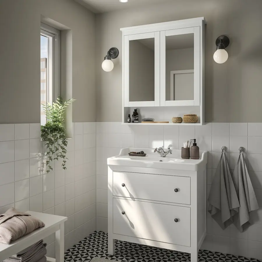 ИКЕА IKEA Простой, изысканный внешний вид со скандинавским шармом в сочетании с современными функциями, такими как плавный выдвижной ящик и водосберегающий смеситель. Белую отделку легко сочетать с другой мебелью. Оригинальная икея/ikea