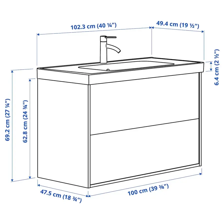 ИКЕА IKEA Мебель для ванной комнаты ТЭННФОРСЕН излучает классическую элегантность благодаря своим скошенным краям, которые придают ей вид ручной работы. Комбинация с 2 просторными ящиками и большим количеством места на раковине, которое можно использовать для зубных щеток и мыла. Оригинальная икея/ikea