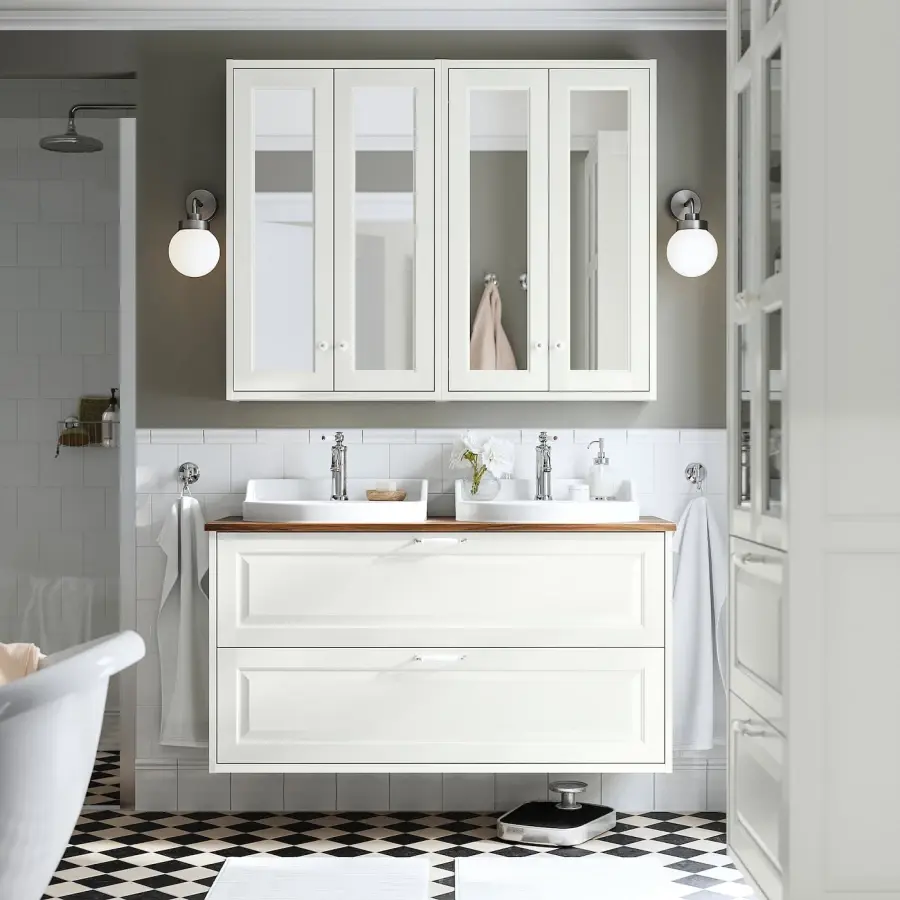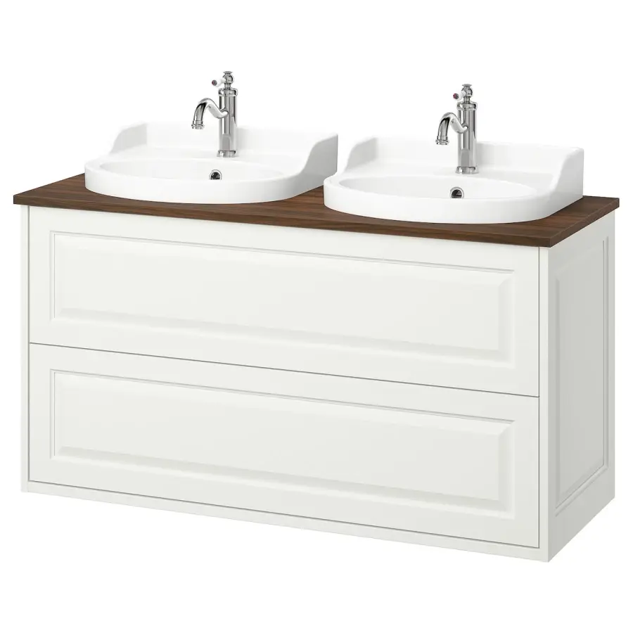 Тумба для ванной - TÄNNFORSEN / RUTSJÖN / TАNNFORSEN / RUTSJОN IKEA/ ТАНФФОРСЕН/РУСТЕН ИКЕА, 122х76 см, белый/коричневый