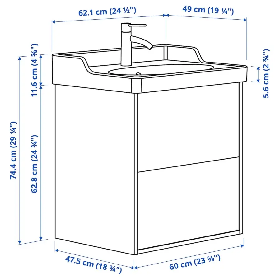 ИКЕА IKEA Мебель для ванной комнаты ТЭННФОРСЕН излучает классическую элегантность благодаря своим скошенным краям, которые придают ей вид ручной работы. Сочетание двух вместительных ящиков и умывальника с приподнятым бортиком впечатляет традиционным дизайном. Оригинальная икея/ikea