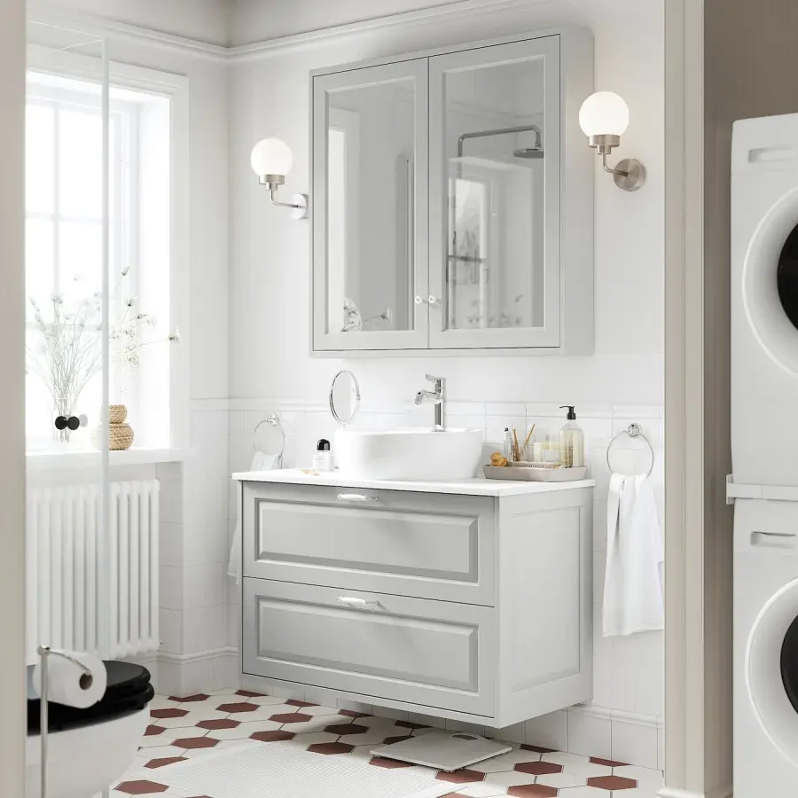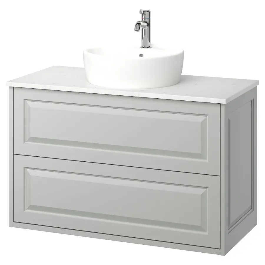 ИКЕА IKEA Мебель для ванной комнаты ТЭННФОРСЕН со скошенными краями излучает классическую элегантность. Шкаф под умывальник в сочетании со столешницей и круглой раковиной на столешнице создают уникальный декоративный элемент, напоминающий о прекрасном мастерстве. Оригинальная икея/ikea