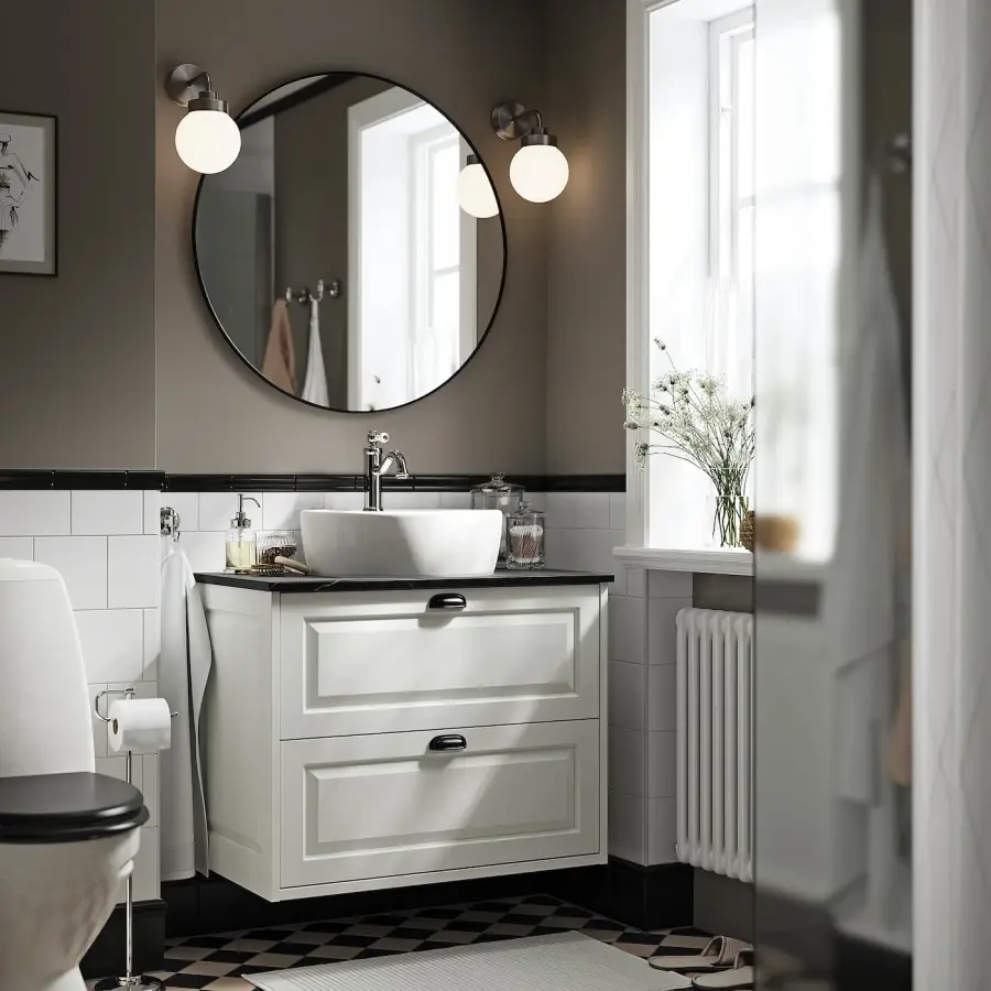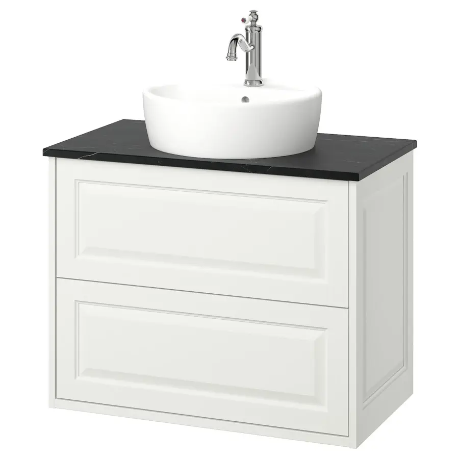 ИКЕА IKEA Мебель для ванной комнаты ТЭННФОРСЕН со скошенными краями излучает классическую элегантность. Шкаф под умывальник в сочетании со столешницей и круглой раковиной на столешнице создают уникальный декоративный элемент, напоминающий о прекрасном мастерстве. Оригинальная икея/ikea