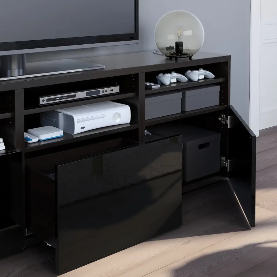 ИКЕА IKEA В этой комбинации для хранения телевизора есть место для вашего телевизора и для демонстрации ваших любимых вещей за стеклянными дверцами. Кабели от вашего телевизора и других устройств легко держать вне поля зрения, но под рукой, так как в задней части тумбы для телевизора есть несколько выходов для кабелей. Необходимы. Компактные навесные шкафы максимально используют пространство на стене над телевизором. Оптимизируйте и организуйте свое хранилище БЕСТО с помощью ящиков и вставок, которые вам нравятся. Оригинальная икея/ikea