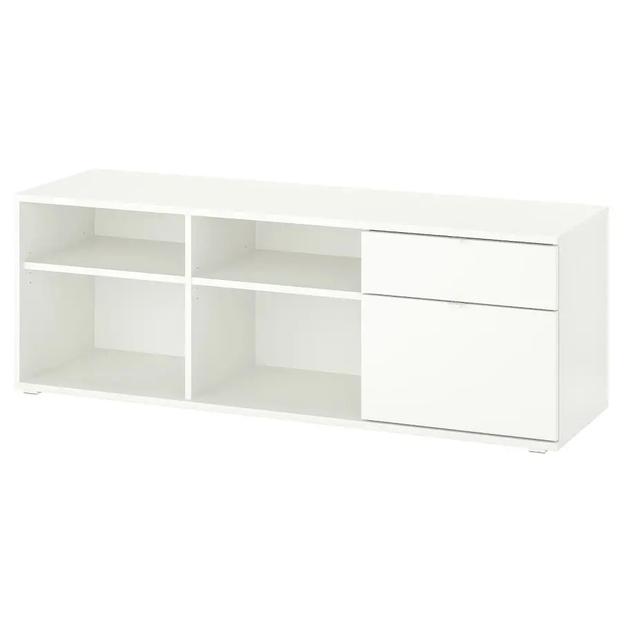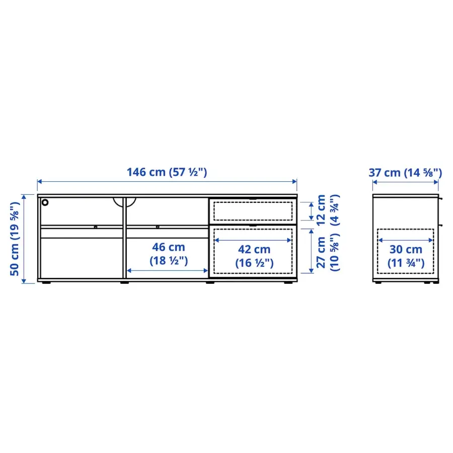 ИКЕА IKEA Разместите свои любимые предметы на открытых полках и спрячьте предметы, которые обычно загромождают ящики или ящики для хранения. 2 регулируемые полки; регулируйте расстояние в соответствии с вашими потребностями. 2 ящика разного размера помогают организовать ваши вещи. Открытые полки оптимальны при использовании тумбы для телевизионных/кабельных коробок, так как нет дверей или ящиков, которые мешали бы сигналу от пультов дистанционного управления. Спрячьте спутанные кабели от зарядных устройств, устройств и декоративного освещения, пропустив их через розетки в задней части. Оригинальная икея/ikea
