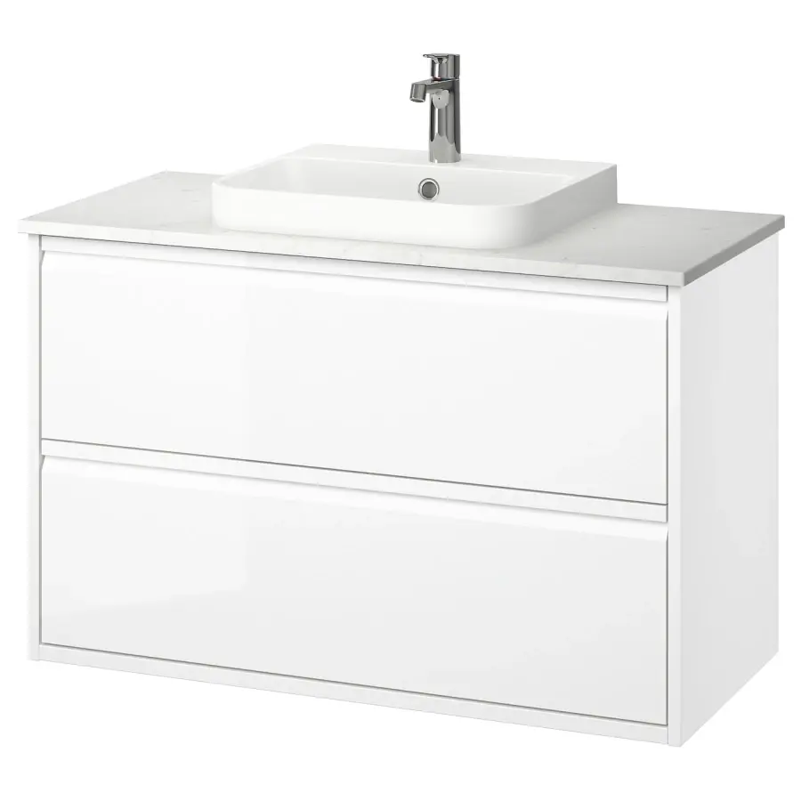 ИКЕА IKEA Мебель для ванной комнаты ÄNGSJÖN восхищает современным внешним видом и минималистскими деталями. Шкаф под умывальник в сочетании со столешницей и умывальник, частично утопленный в столешницу, создают стильный элемент с неповторимым характером в ванной комнате. Оригинальная икея/ikea