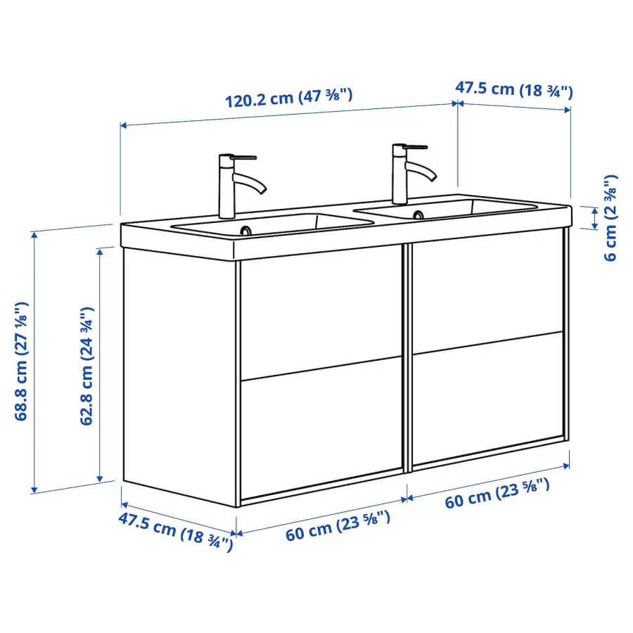Тумбы для ванной - ÄNGSJÖN / BACKSJÖN/АNGSJОN / BACKSJОN IKEA/ ЭНГСЬЕН / БЭКСЬЕН ИКЕА, 122х69 см , белый/коричневый
