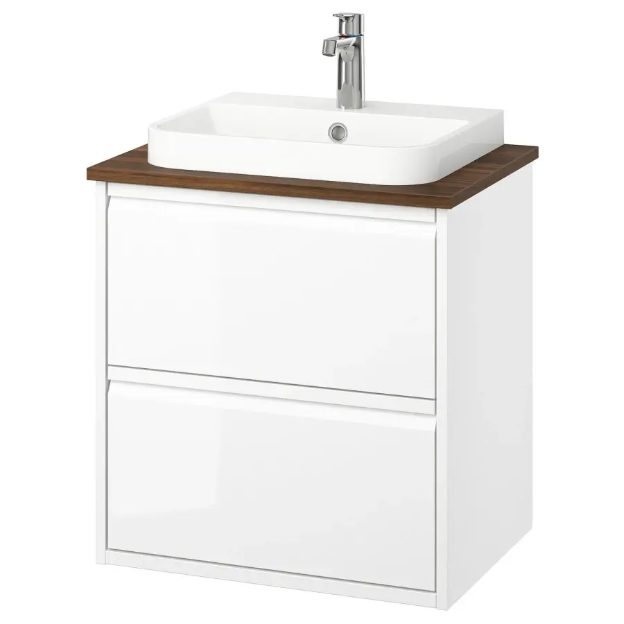 Тумбы для ванной - ÄNGSJÖN / BACKSJÖN/АNGSJОN / BACKSJОN IKEA/ ЭНГСЬЕН / БЭКСЬЕН ИКЕА, 62х71 см , белый/коричневый