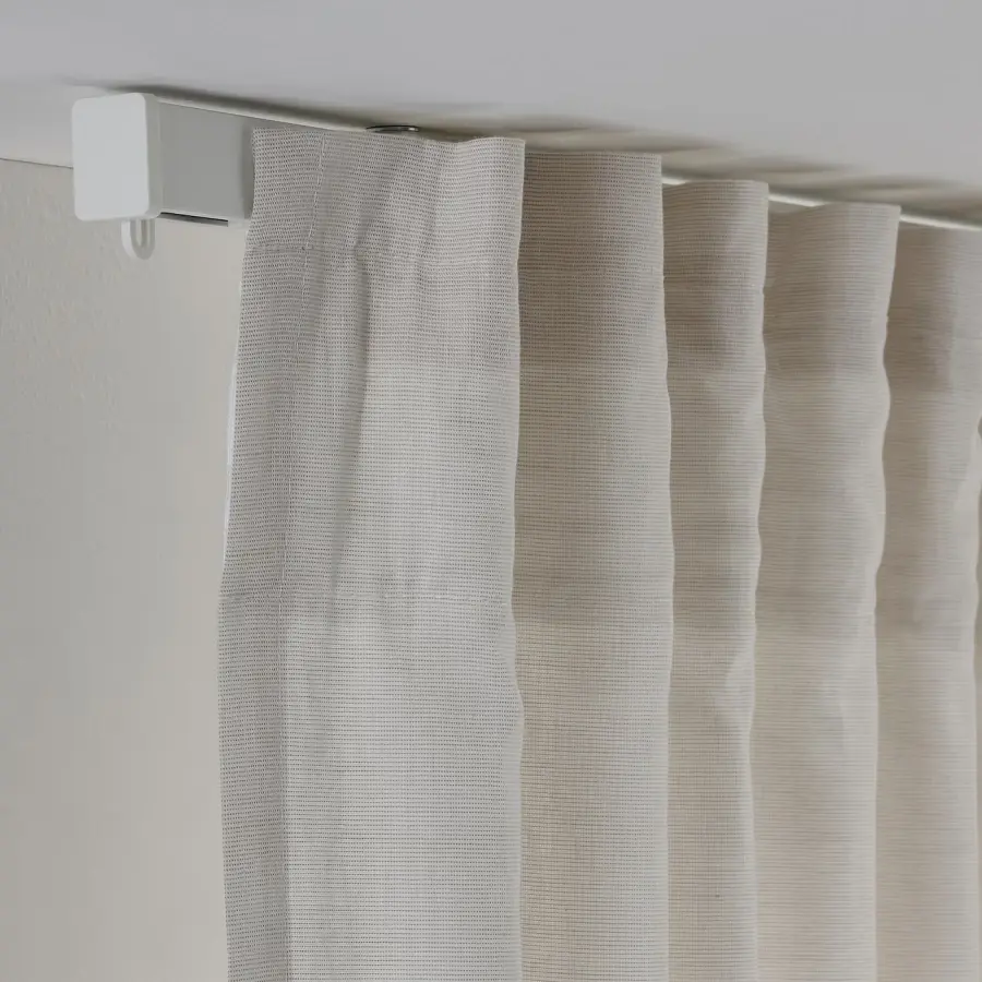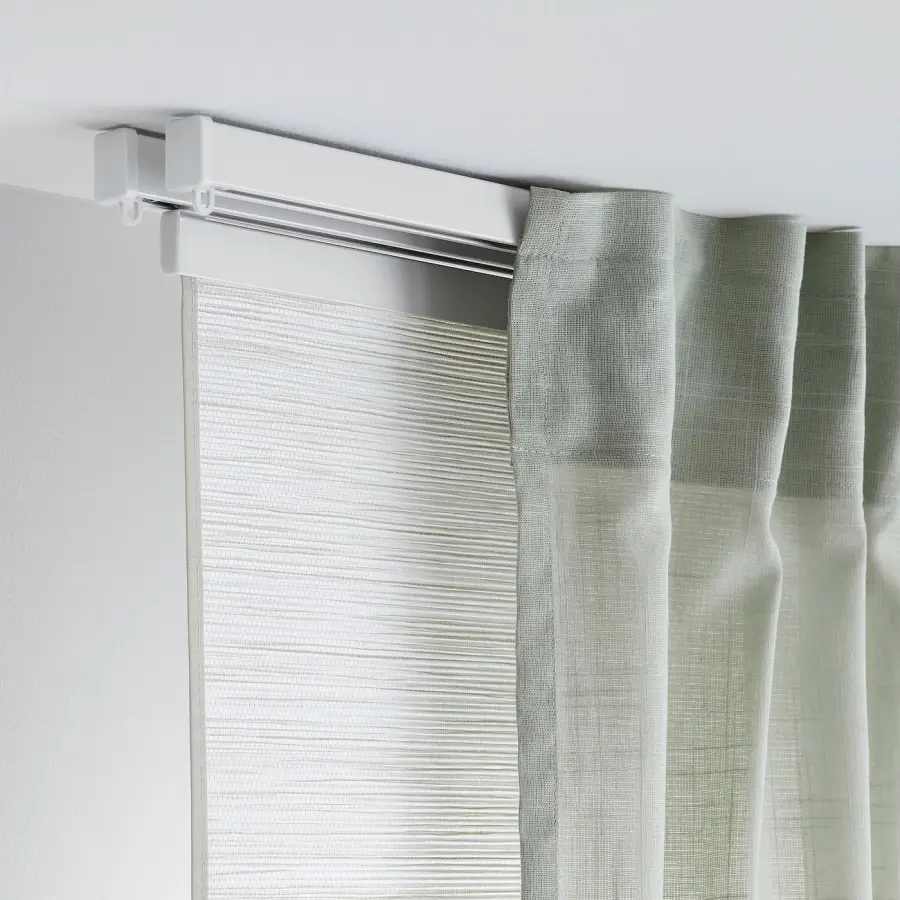 ИКЕА IKEA Рельс можно закрепить на стене или потолке с помощью соответствующих фитингов. Потолочные крепления входят в комплект, настенные крепления продаются отдельно. Рельс можно отрезать до нужной длины с помощью ножовки. Вы можете добавить рельс в однослойную комбинацию, чтобы создать двухслойную комбинацию. Оригинальная икея/ikea