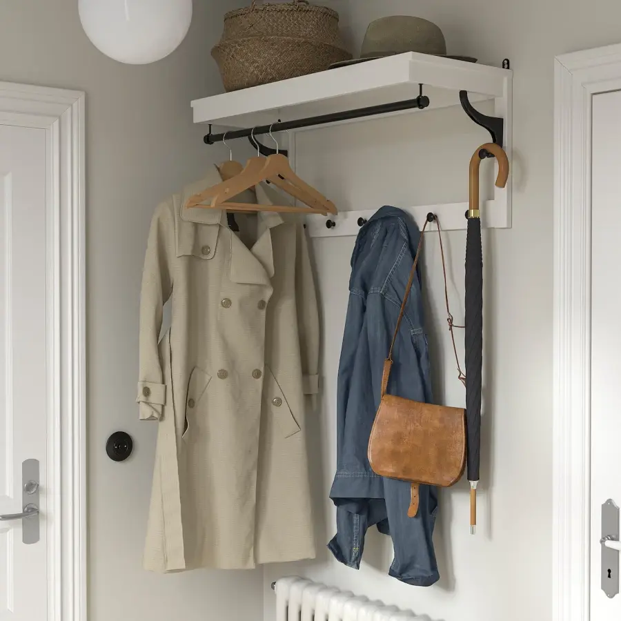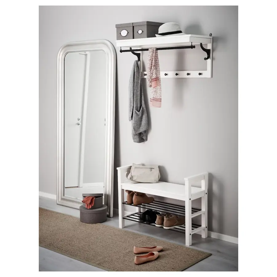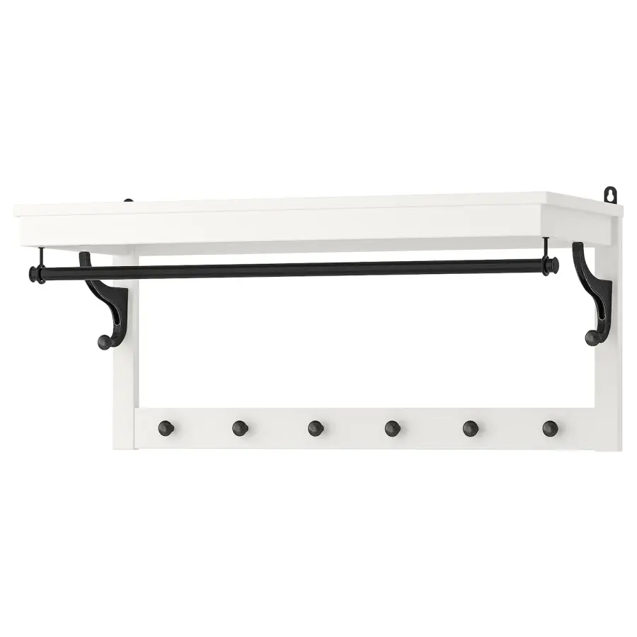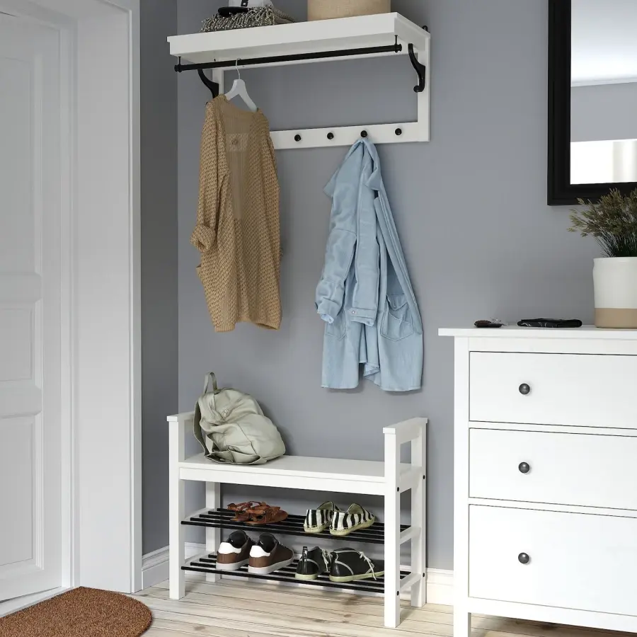 ИКЕА IKEA Вы можете повесить свои пальто и куртки на вешалки на вешалке для одежды, чтобы они сохраняли форму. Поставляется с 6 крючками для сумок, шарфов, легких курток, собачьих поводков и других вещей, которые вы хотите иметь под рукой. Вешалка для шляп и пальто ХЕМНЭС идеально подходит для прихожей, когда вам нужно много места для хранения в небольшом пространстве. На полке есть место для шляп, перчаток, сумок и небольших ящиков для хранения таких вещей, как средства по уходу за одеждой. серии. Прочный и прочный, так как он изготовлен из массива дерева и стали с порошковым покрытием. Оригинальная икея/ikea