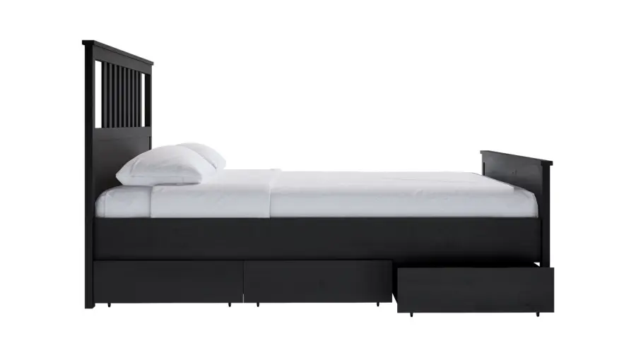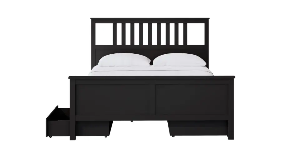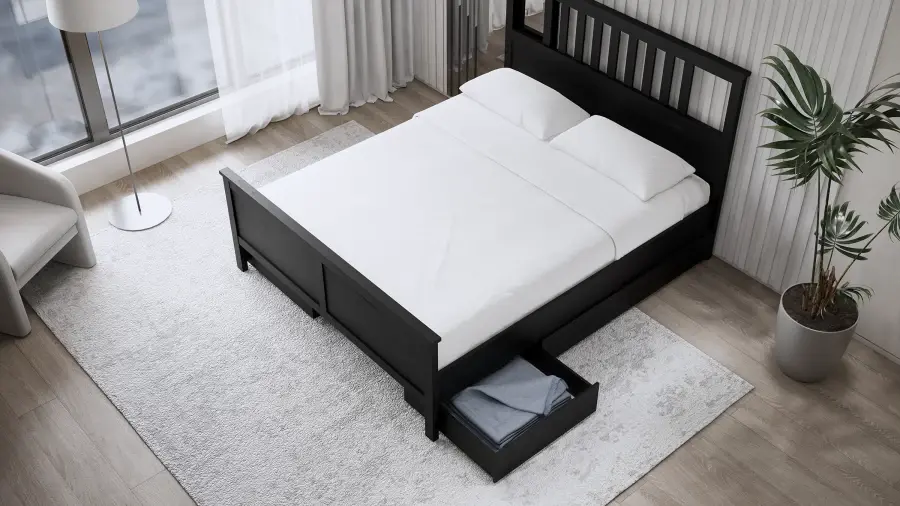 С каждой стороны кроватей КЫМОР помещается по 3 ящика.
