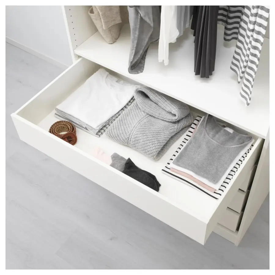 ИКЕА IKEA 10 лет гарантии. Прочтите об условиях в гарантийном буклете. Закрывается медленно, бесшумно и мягко благодаря встроенному демпферу. Коробки КОМПЛИМЕНТ идеально помещаются в этот ящик и помогают упорядочить носки, шарфы и другие мелкие предметы, не теряя места. Оригинальная икея/ikea