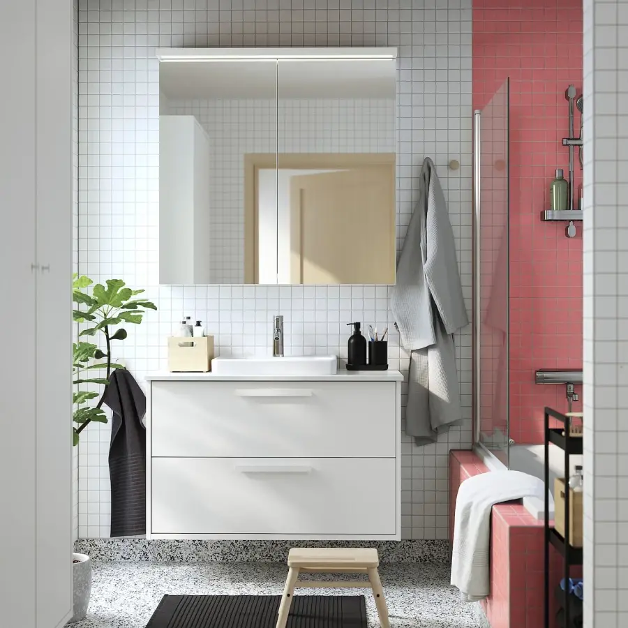 ИКЕА IKEA Неглубокий шкаф позволяет оптимально использовать пространство стены. Двери с зеркалами внутри и снаружи позволяют наслаждаться прекрасным видом со всех сторон. Оригинальная икея/ikea